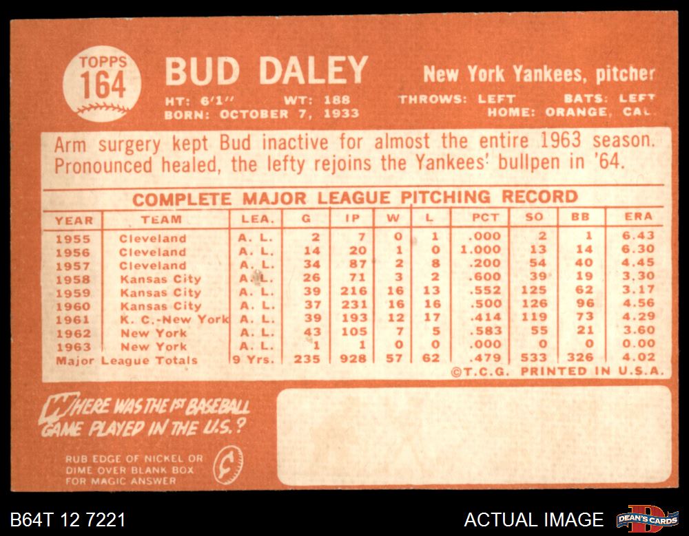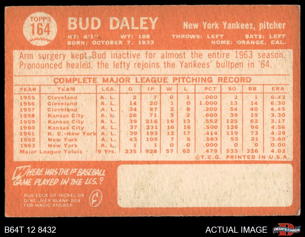 1964 Topps #164 Bud Daley 4 - VG/EX