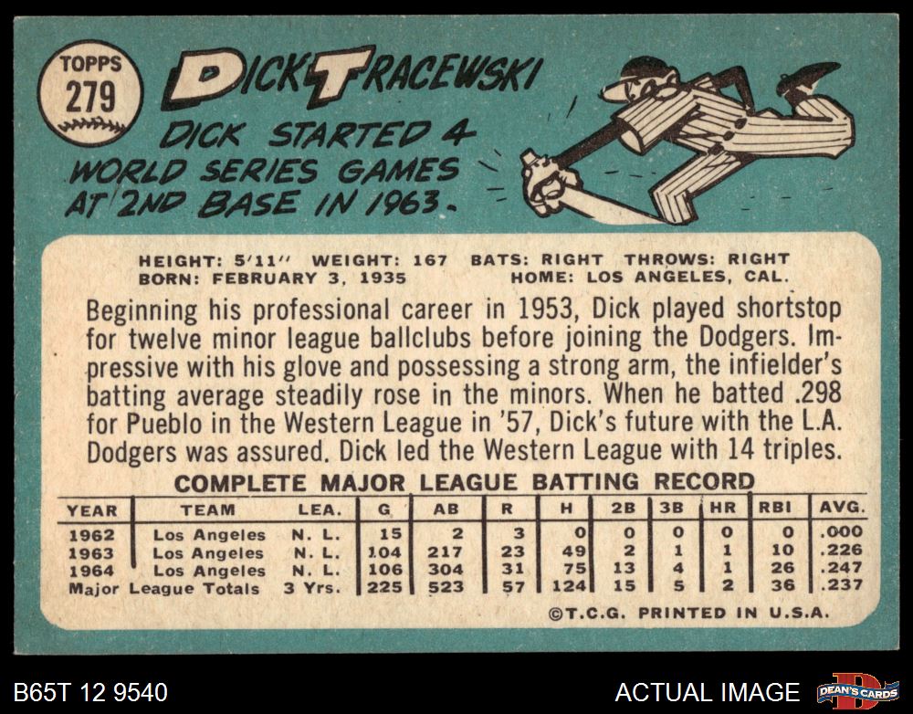 1965 Topps #279 Dick Tracewski 6 - EX/MT