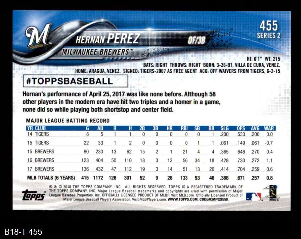 2018 Topps #455 Hernan Perez 8 - NM/MT