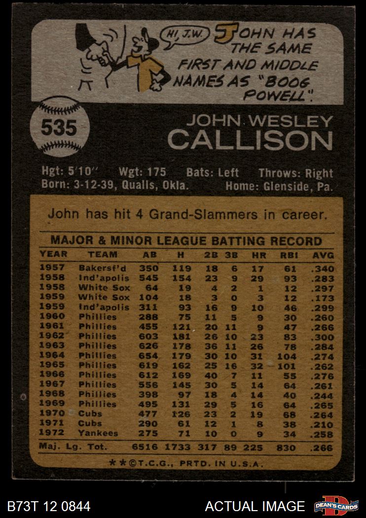 1973 Topps #535 Johnny Callison 4.5 - VG/EX+