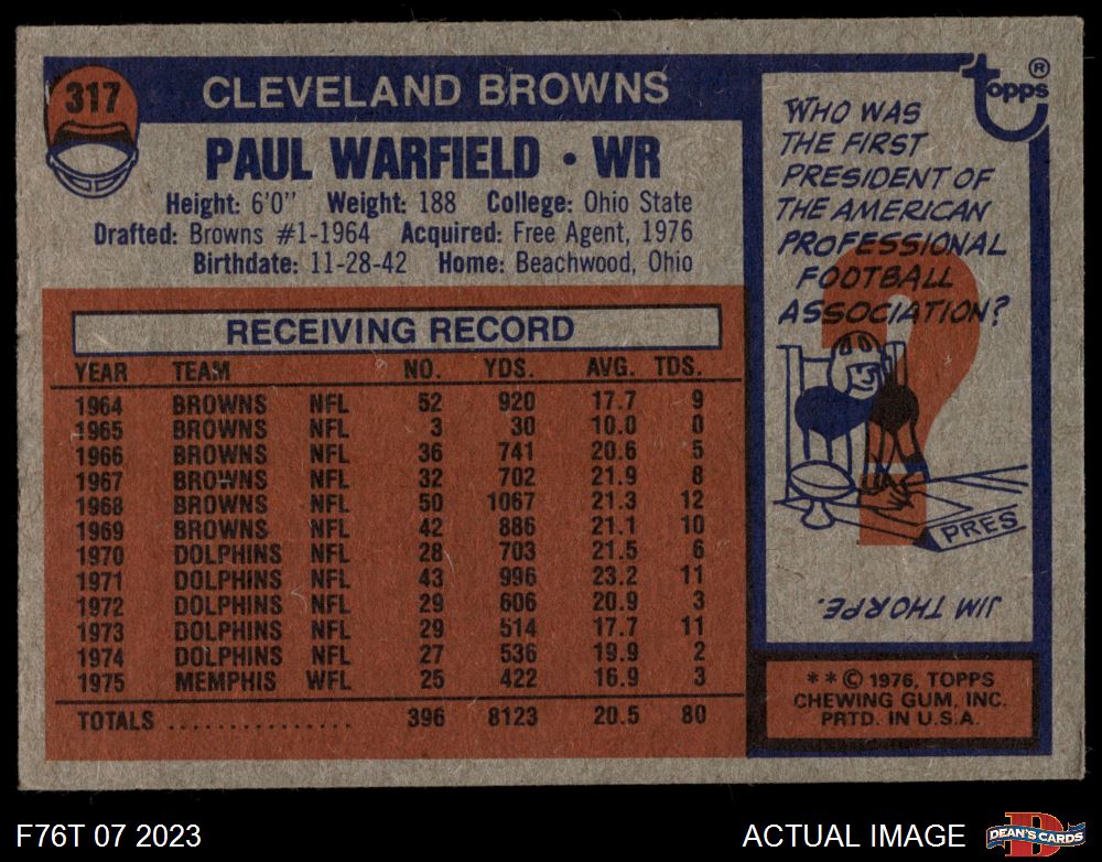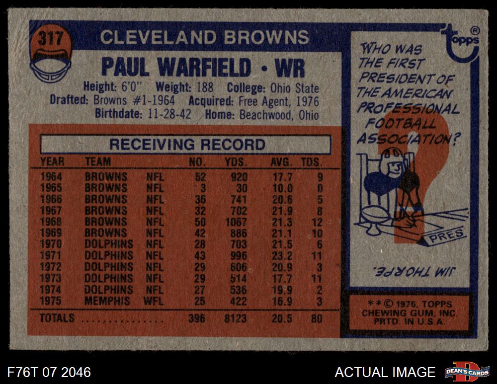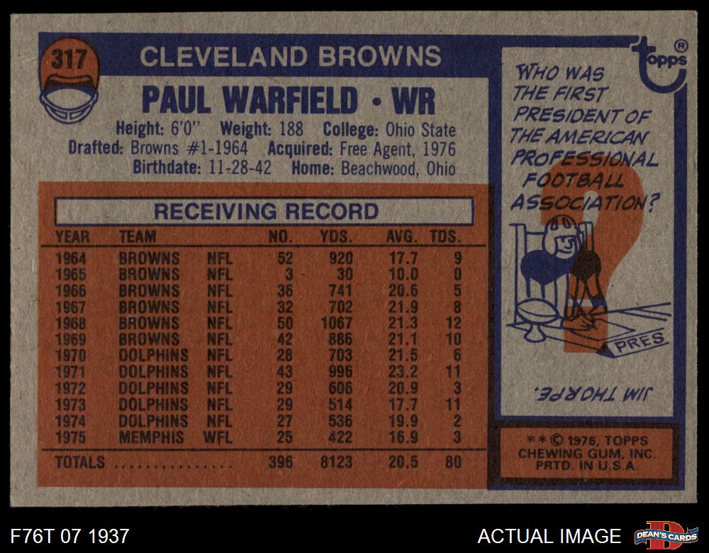 1976 Topps #317 Paul Warfield