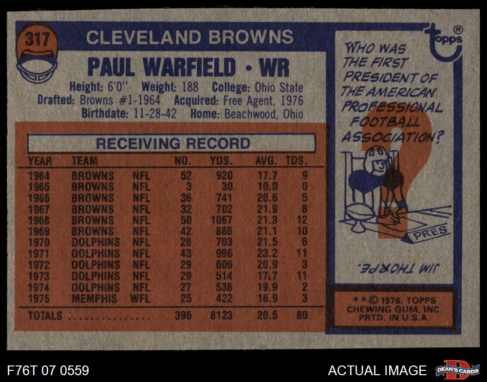 1976 Topps #317 Paul Warfield 7 - NM