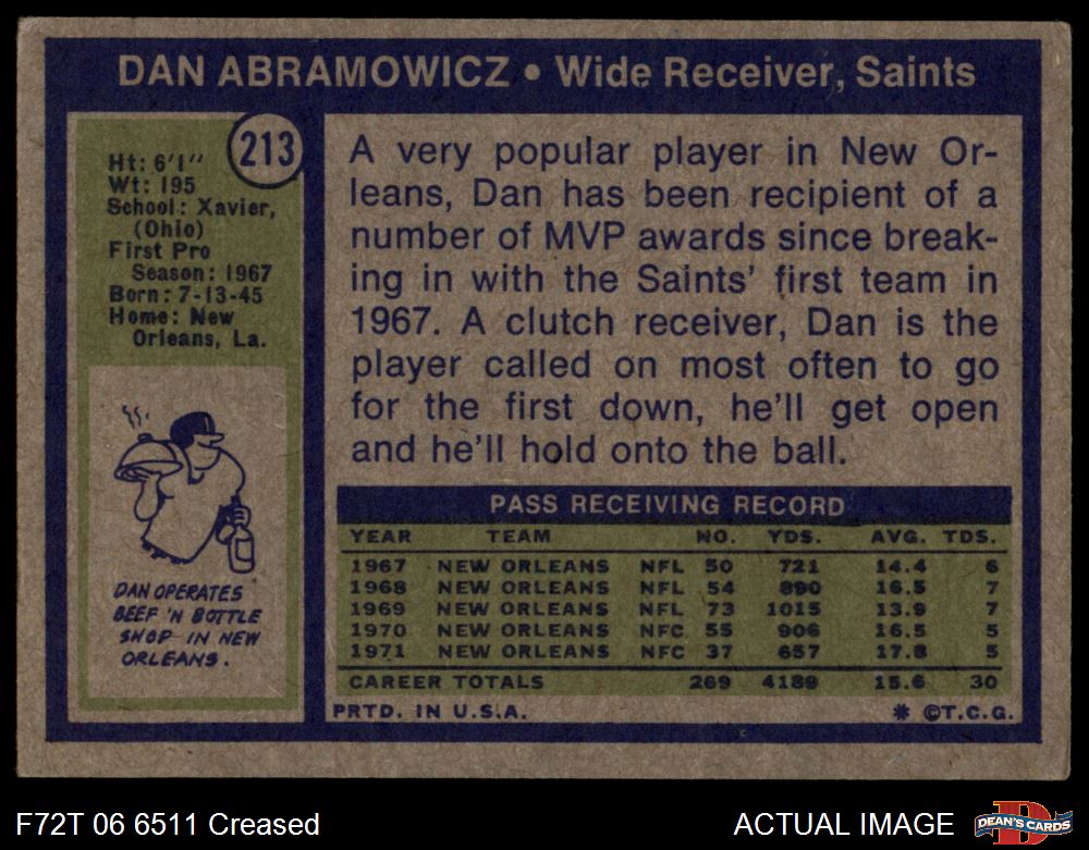 1972 Topps #213 Dan Abramowicz 2 - GOOD