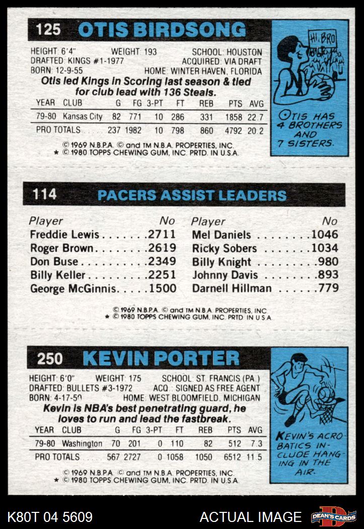 1980 Topps - Kevin Porter / Johnny Davis / Otis Birdsong 250 / 114 / 125 4 - VG/EX