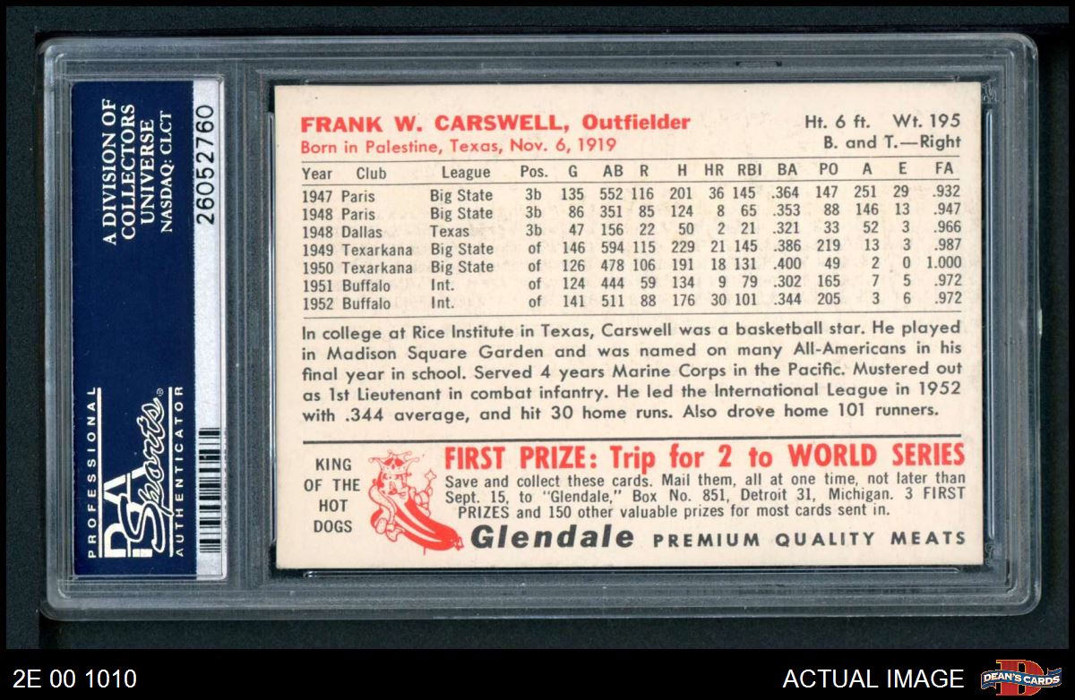 1953 Glendale Hot Dogs Frank Carswell PSA 3 - VG