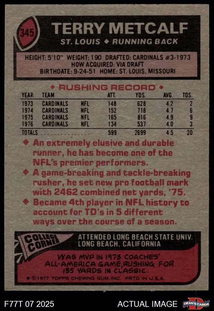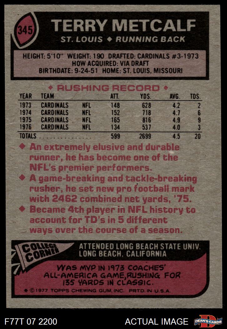 1977 Topps #345 Terry Metcalf