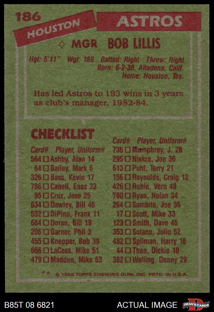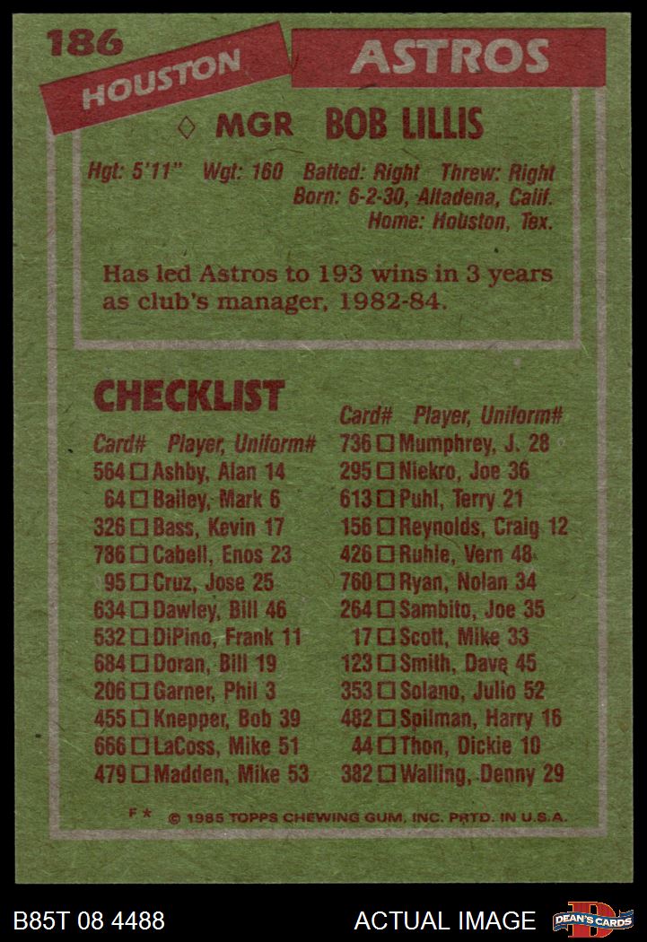 1985 Topps #186 Bob Lillis 7 - NM