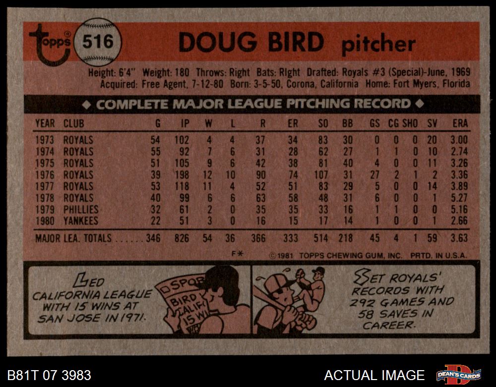 1981 Topps #516 Doug Bird 8 - NM/MT