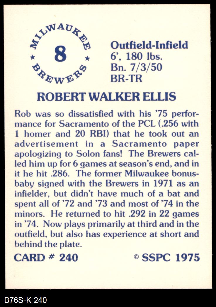1975 SSPC #240 Rob Ellis