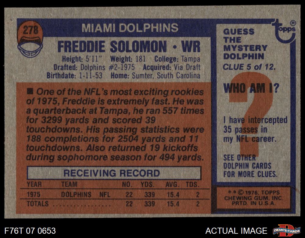 1976 Topps #278 Freddie Solomon 3 - VG