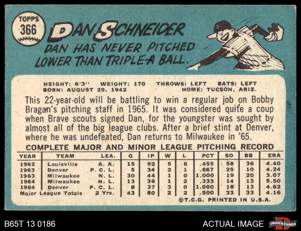 1965 Topps #366 Dan Schneider 3.5 - VG+