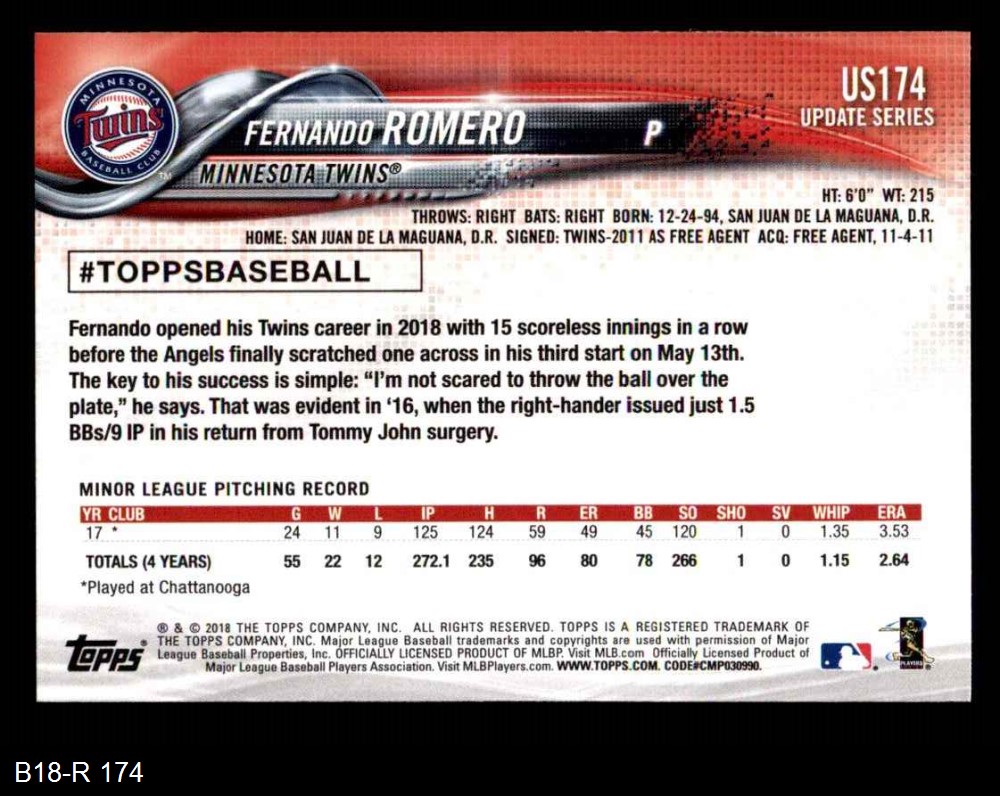 2018 Topps Update #174 Fernando Romero 8 - NM/MT