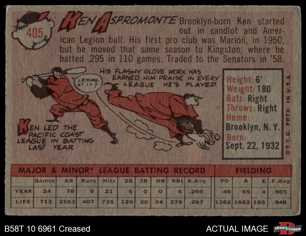 1958 Topps #405 Ken Aspromonte 2 - GOOD