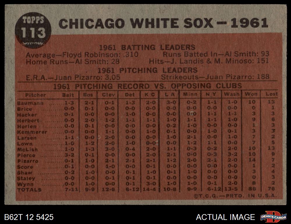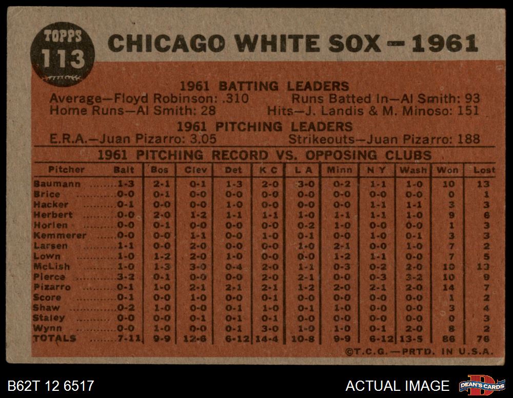1962 Topps #113 NRM White Sox Team 3 - VG