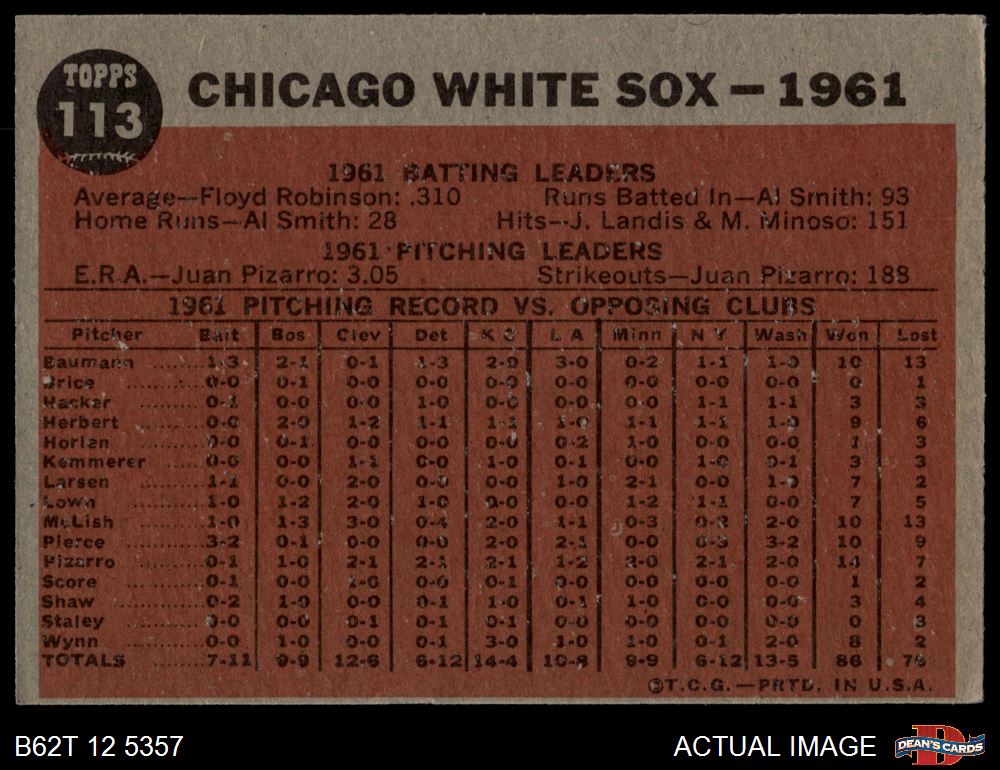 1962 Topps #113 NRM White Sox Team 4.5 - VG/EX+