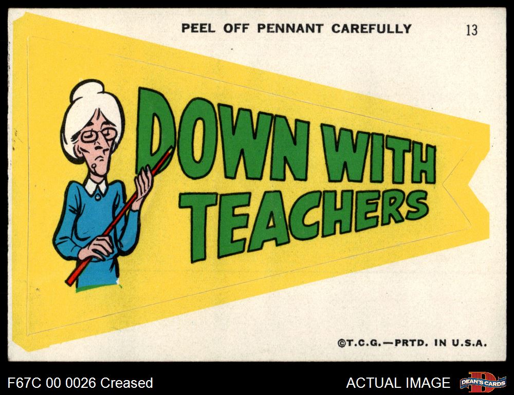 1967 1967 Topps Comic Pennant #13  Down with Teachers Front Thumbnail