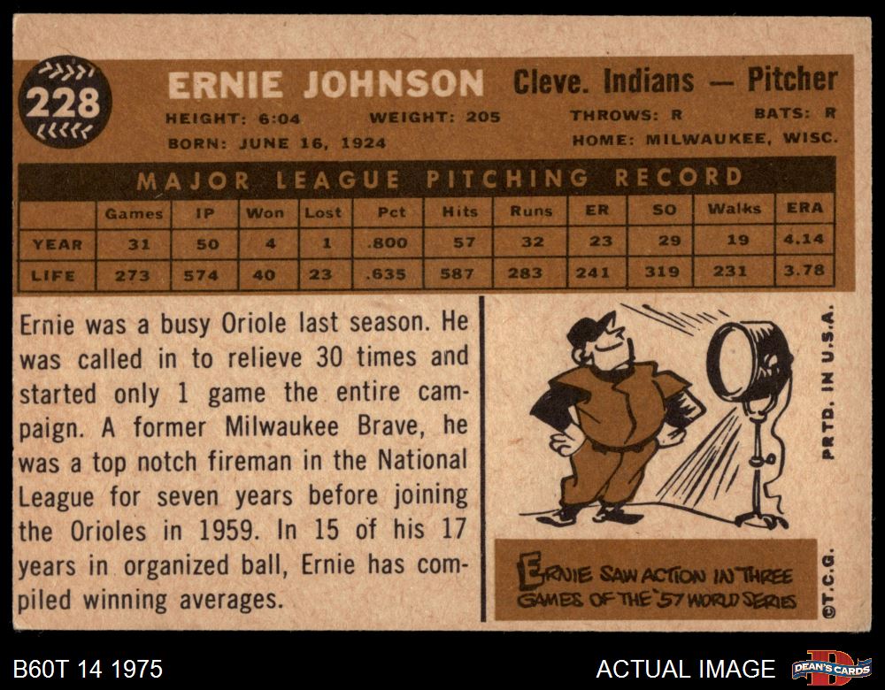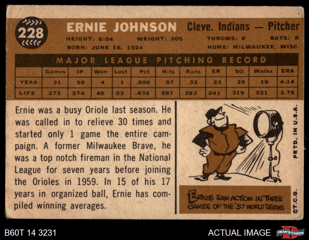 1960 Topps #228 Ernie Johnson 2 - GOOD
