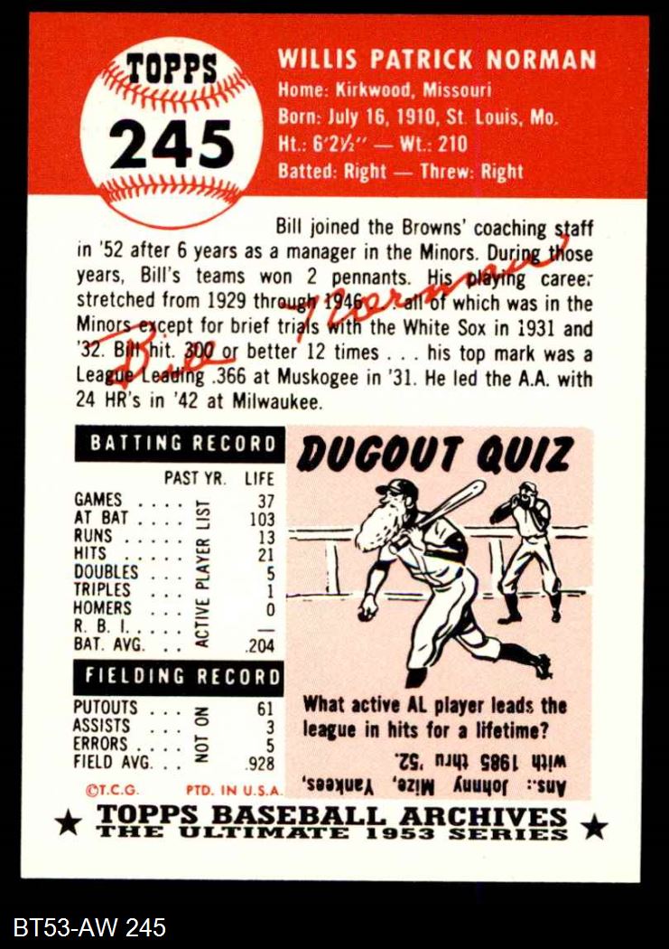 1953 Topps Archives / Reprint (1,400 available)1953 Topps Archives Browns (50 available)