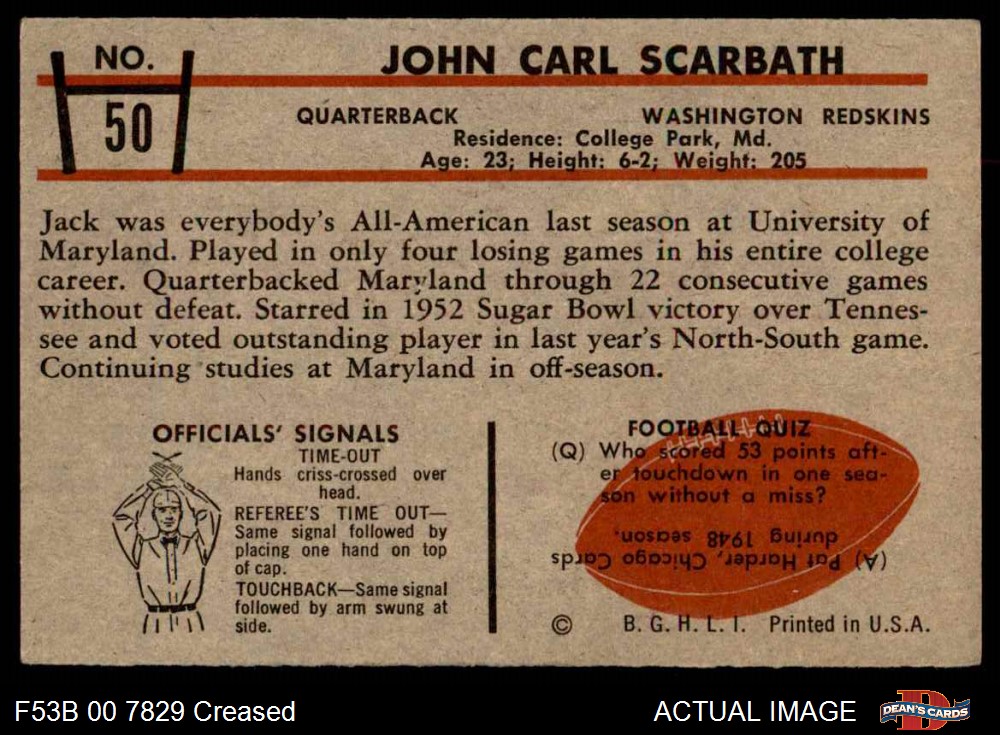 1953 Bowman #50 Jack Scarbath