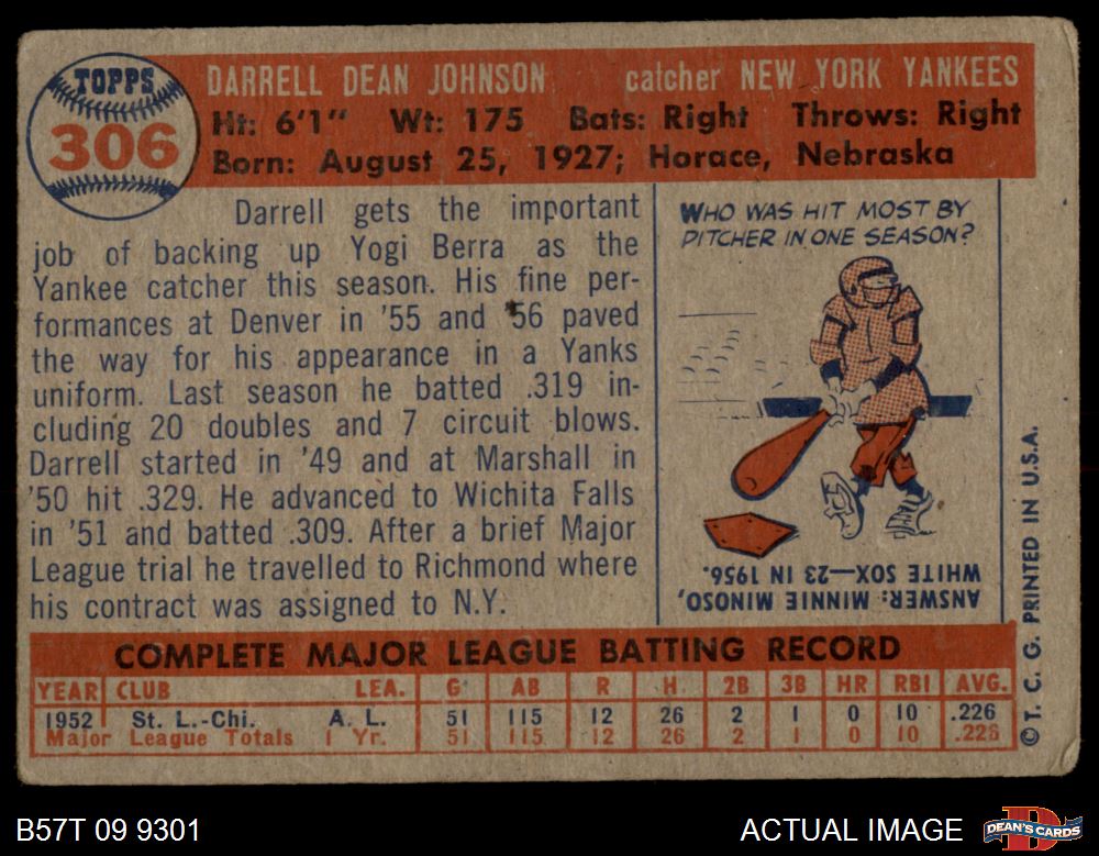 1957 Topps #306 Darrell Johnson 1 - POOR