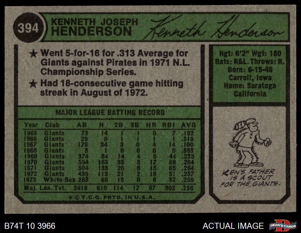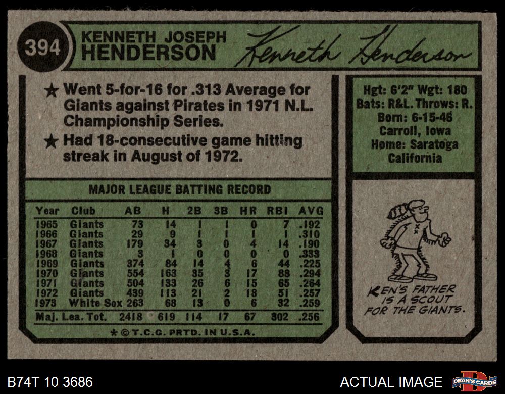 1974 Topps #394 Ken Henderson
