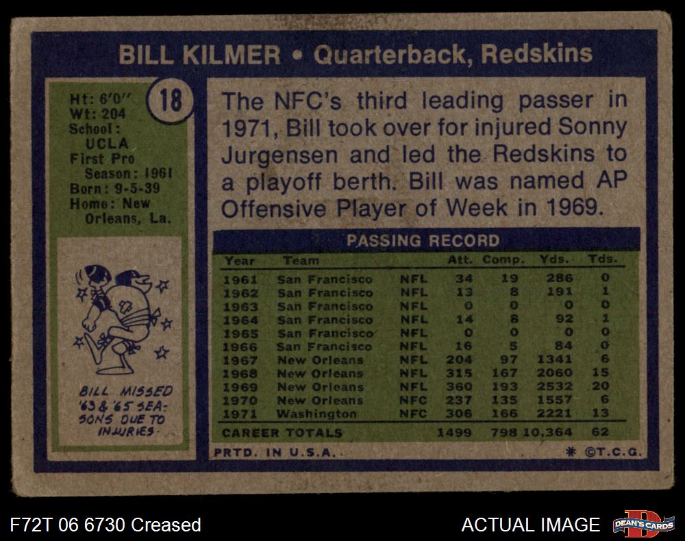 1972 Topps #18 Billy Kilmer 1 - POOR