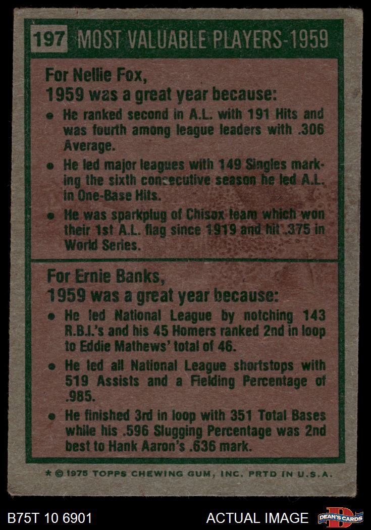 1975 1975 #197 - Nellie Fox / Ernie Banks 1959 MVPs 3 - VG