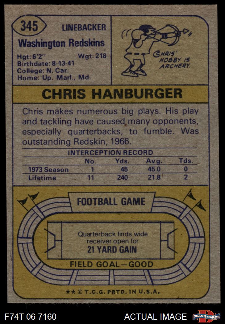 1974 Topps #345 Chris Hanburger 5 - EX