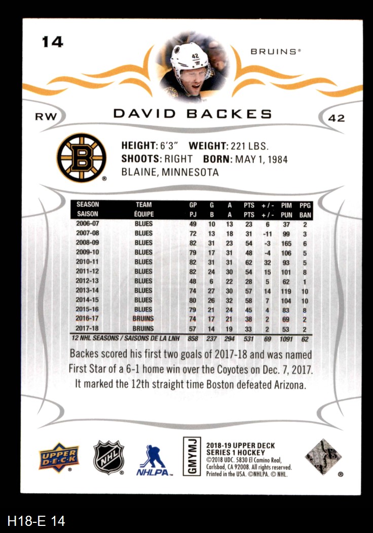 2018-19 Upper Deck Hockey Cards (349 available)2018 Upper Deck Bruins (18 available)