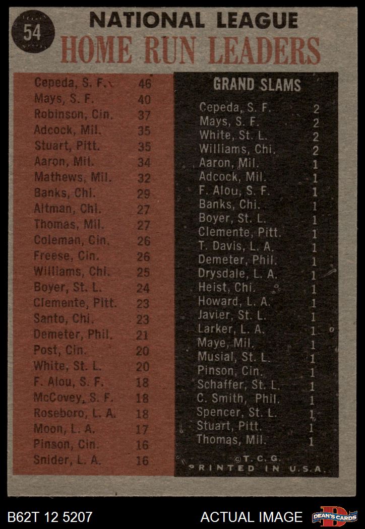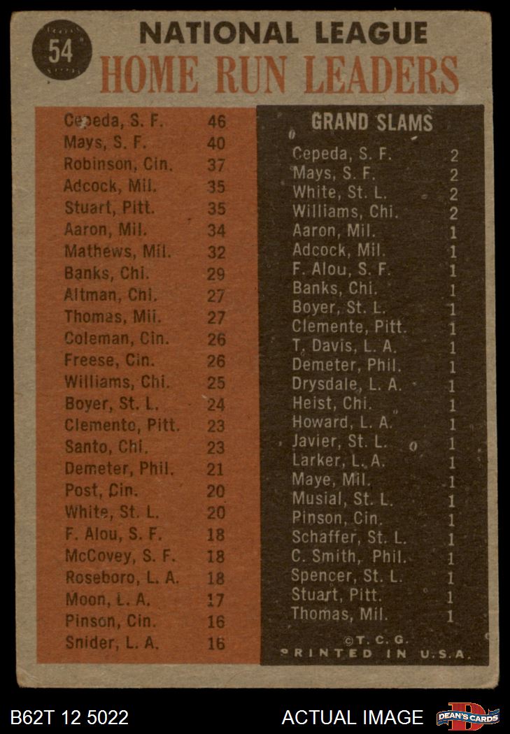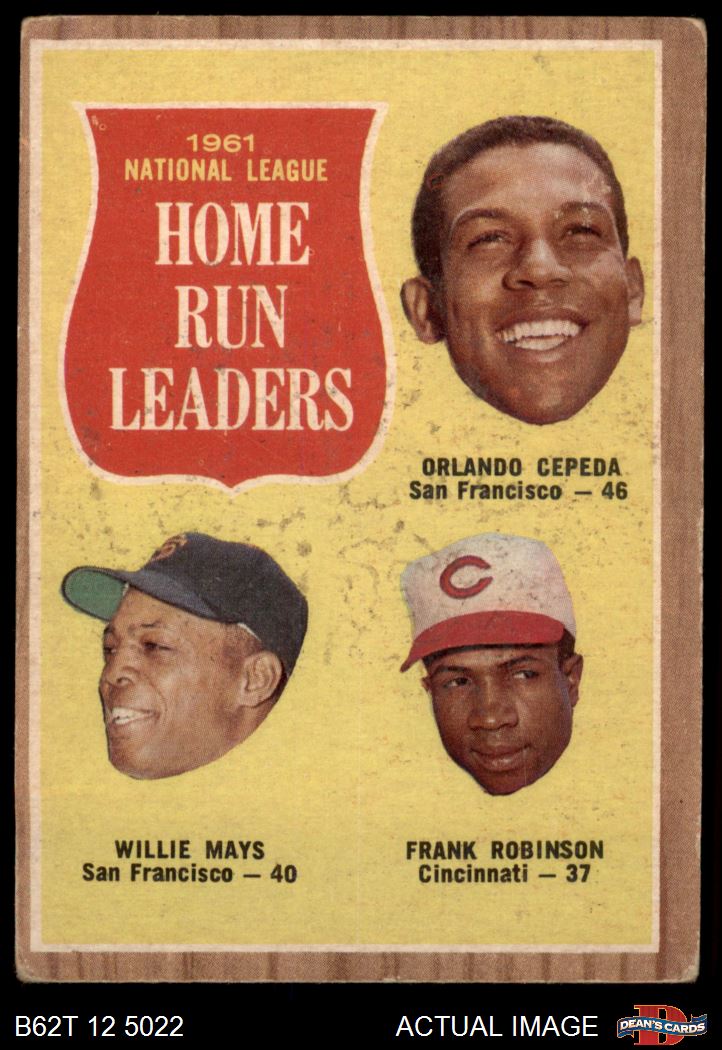 1962 Topps #54 - Orlando Cepeda / Willie Mays / Frank Robinson NL HR Leaders 3 - VG