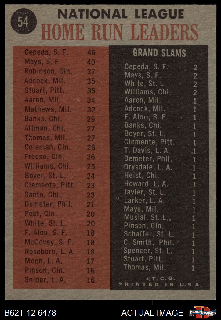 1962 Topps #54 - Orlando Cepeda / Willie Mays / Frank Robinson NL HR Leaders 4.5 - VG/EX+
