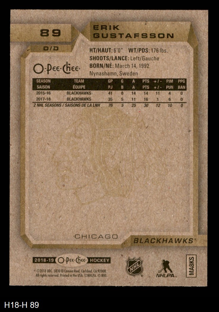 2018 O-Pee-Chee #89 Erik Gustafsson 8 - NM/MT