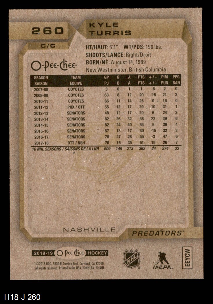 2018 O-Pee-Chee #260 Kyle Turris 8 - NM/MT