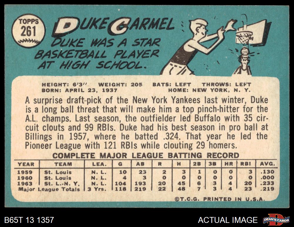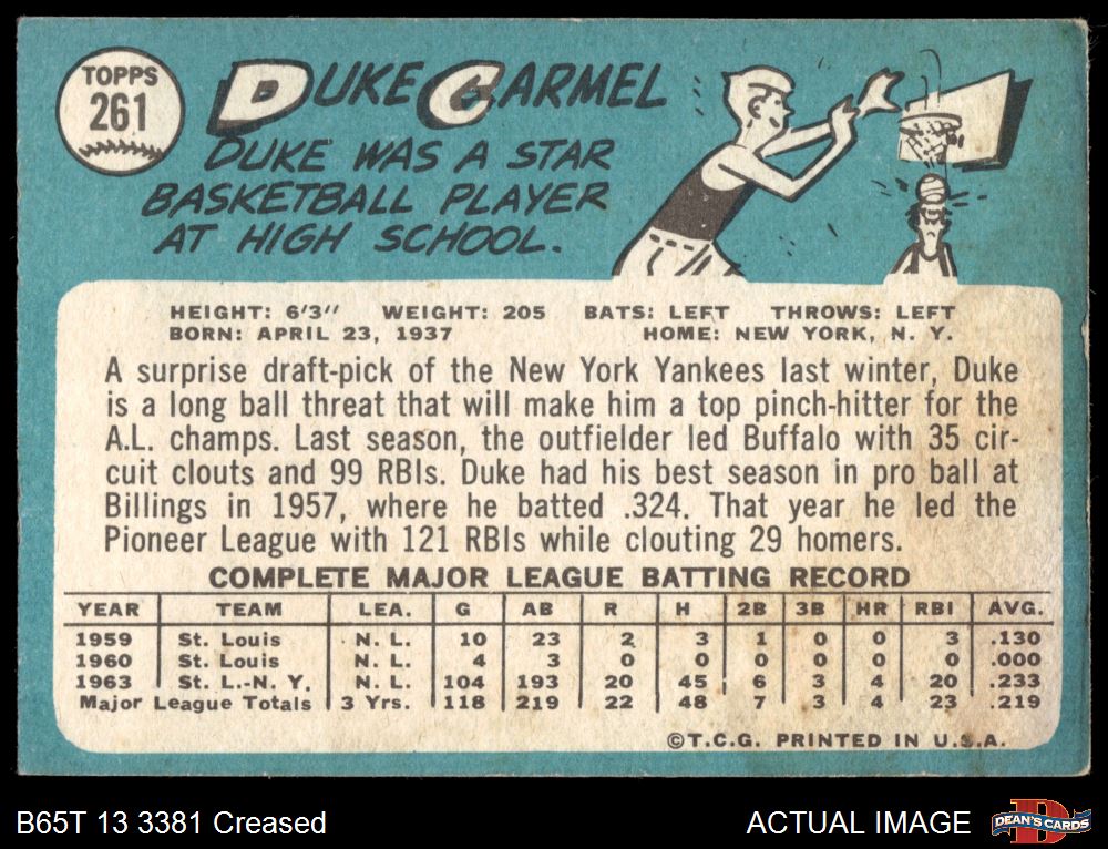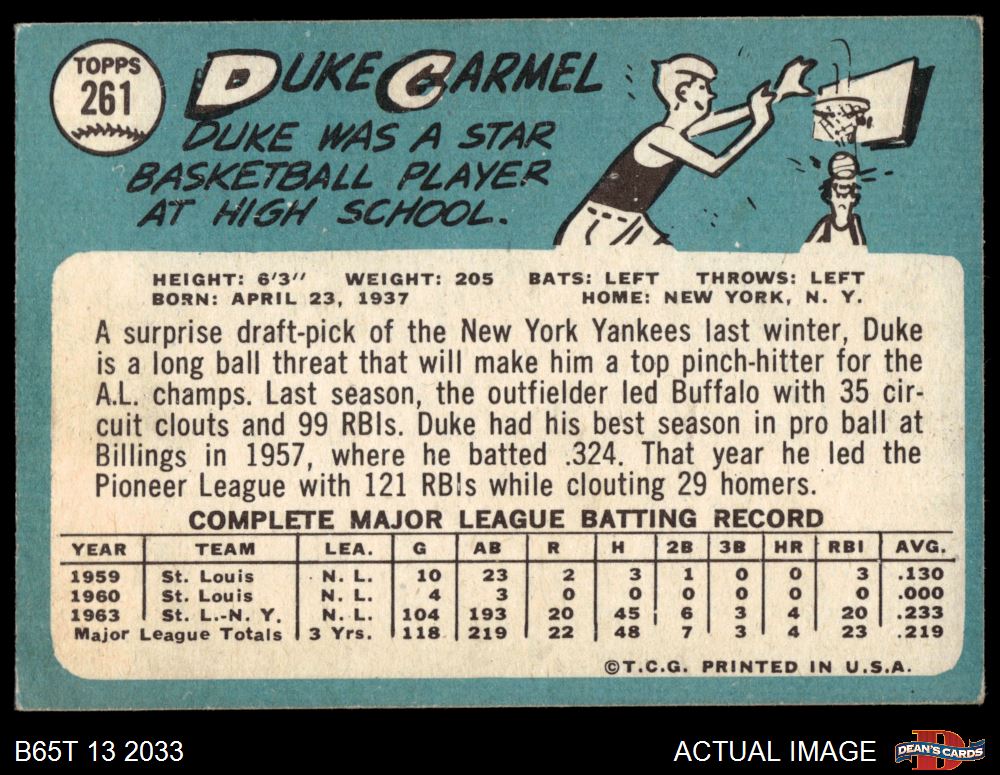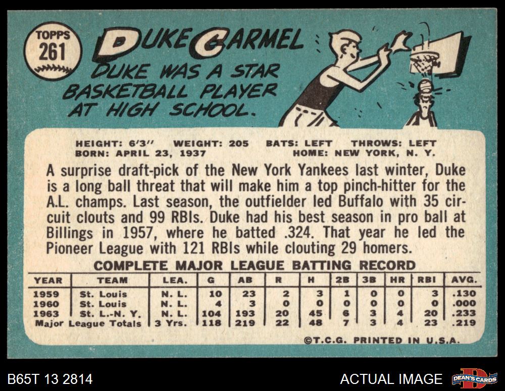 1965 Topps #261 Duke Carmel