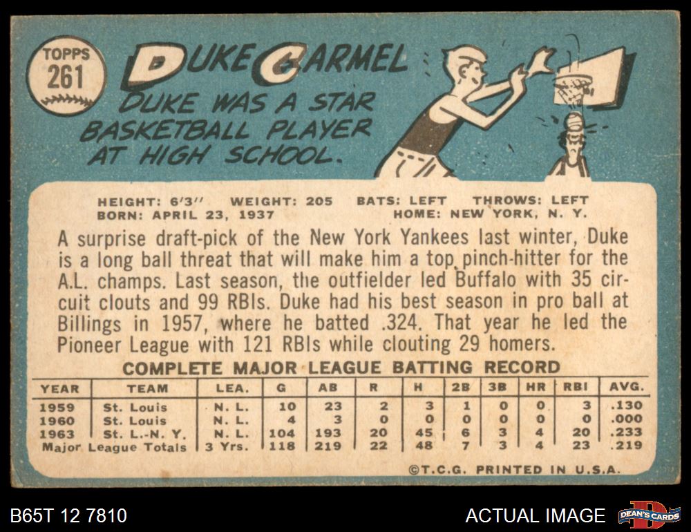 1965 Topps #261 Duke Carmel 3 - VG