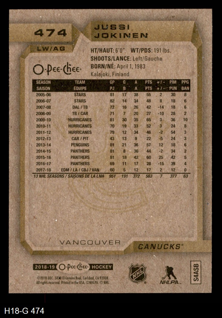 2018 O-Pee-Chee #474 Jussi Jokinen