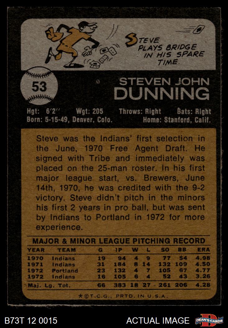 1973 Topps #53 Steve Dunning 4 - VG/EX