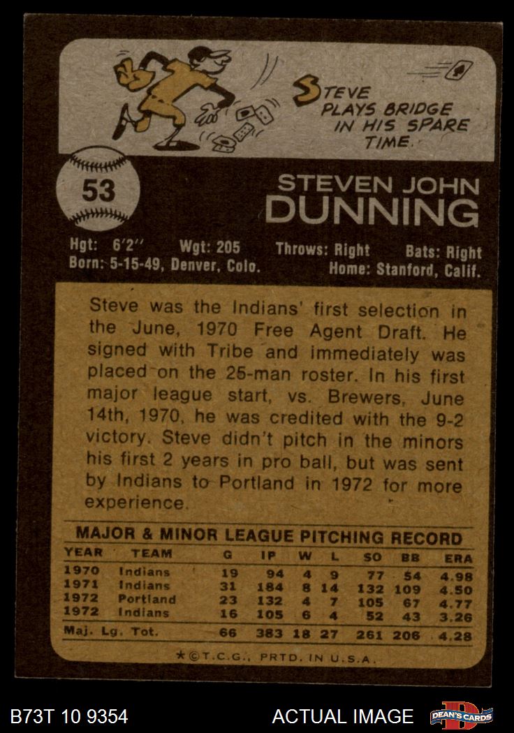 1973 Topps #53 Steve Dunning 8 - NM/MT
