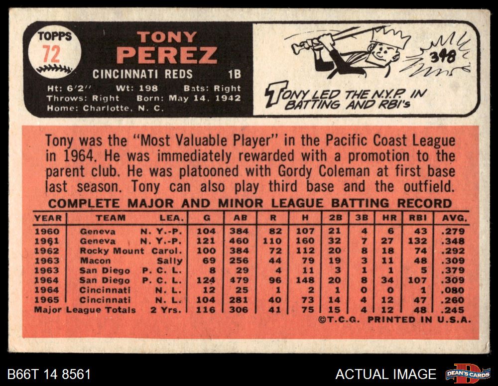 1966 Topps #72 Tony Perez 3.5 - VG+