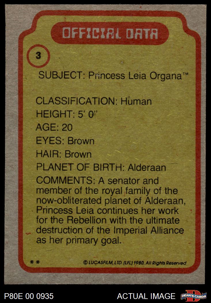 1980 Topps Star Wars The Empire Strikes Back #3 Princess Leia 4 - VG/EX