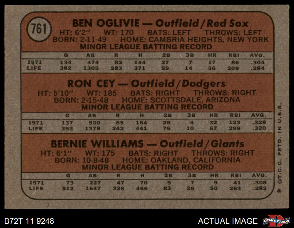 1972 Topps #761 - Ron Cey / Ben Oglivie / Bernie Williams AL - NL Rookies 3 - VG
