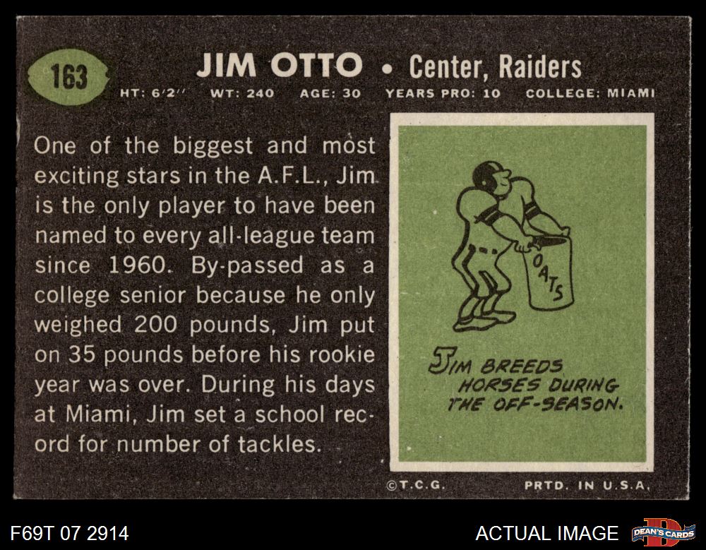 1969 Topps #163 Jim Otto 6 - EX/MT