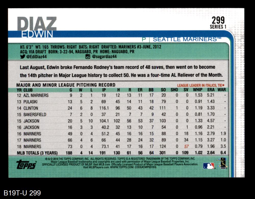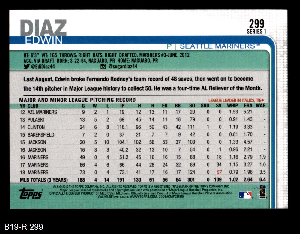 2019 Topps #299 Edwin Diaz 8 - NM/MT