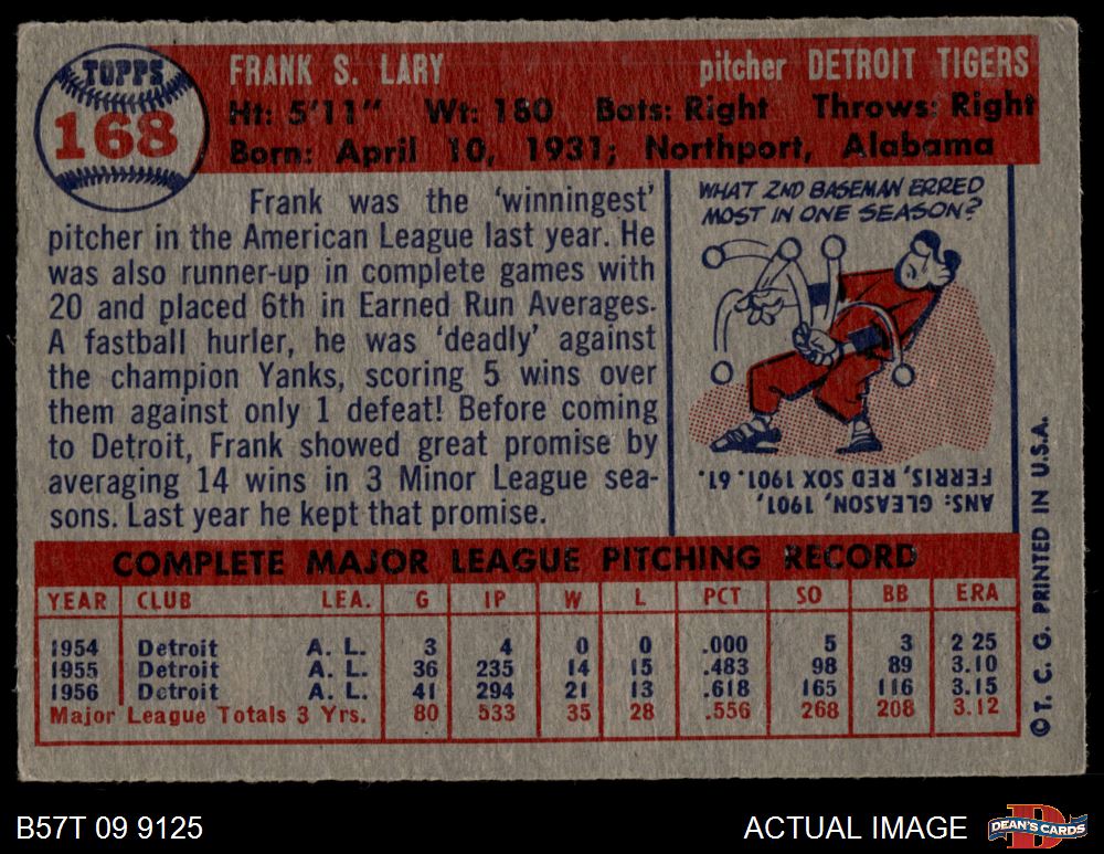 1957 Topps #168 Frank Lary 4 - VG/EX
