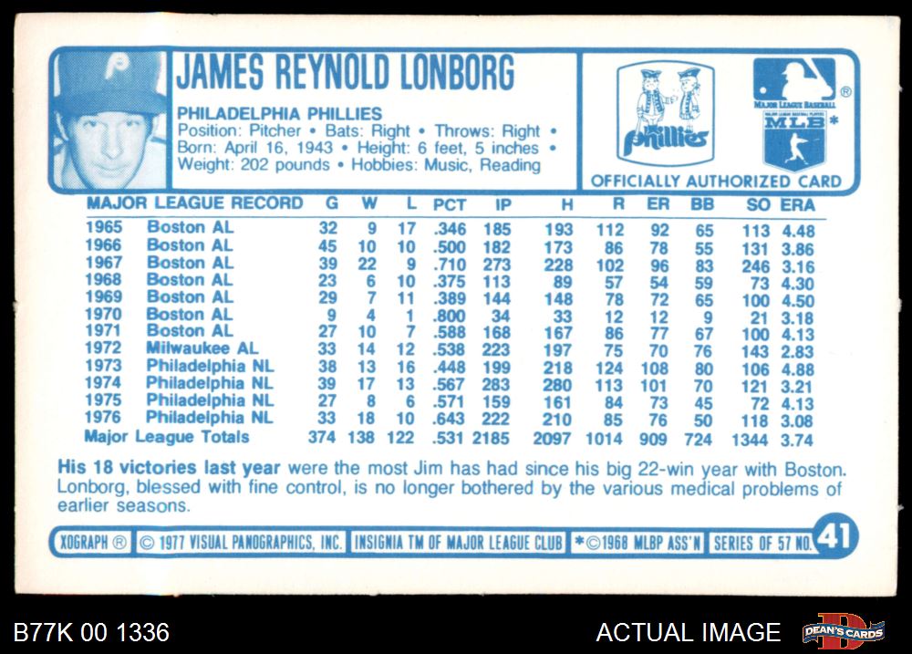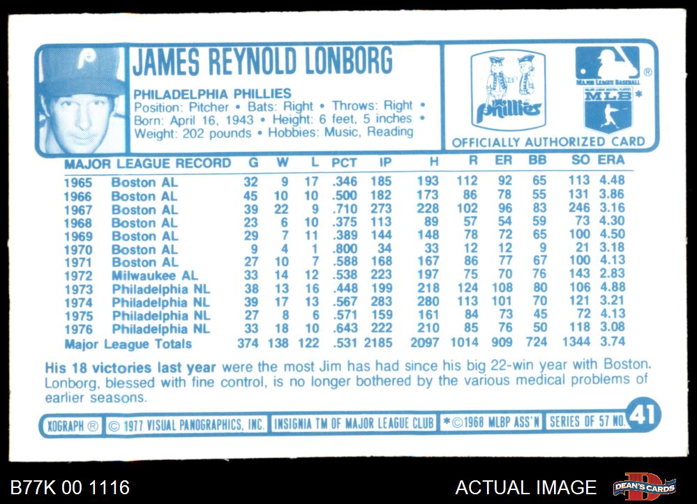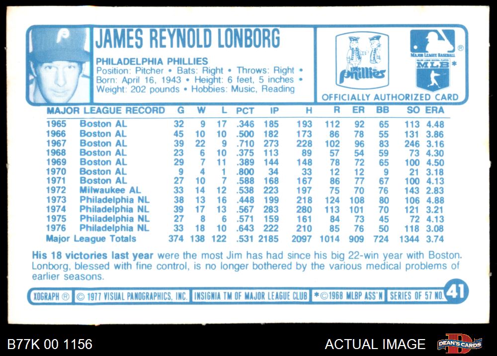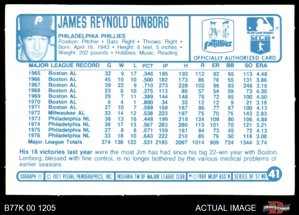1977 Kellogg's #41 Jim Lonborg 8 - NM/MT