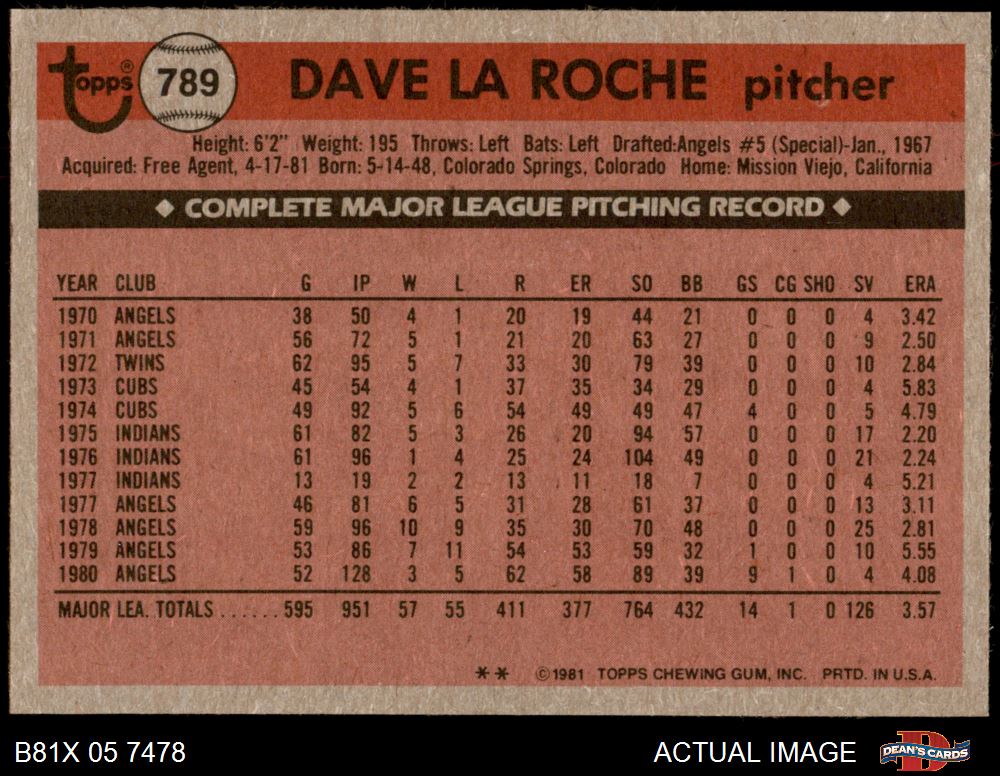 1981 Topps Traded #789 T Dave LaRoche 5.5 - EX+