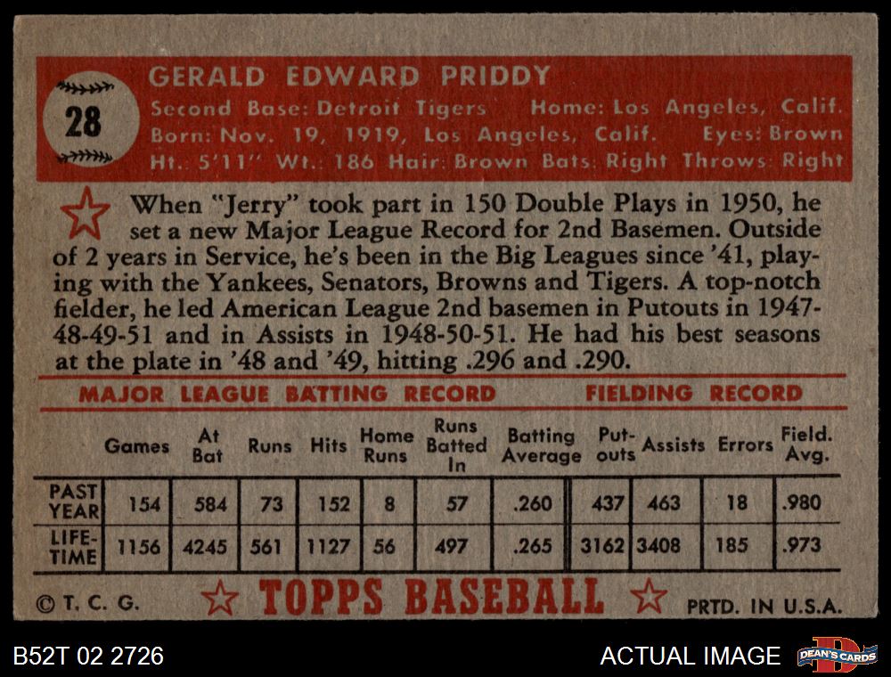 1952 Topps #28 Jerry Priddy 4 - VG/EX