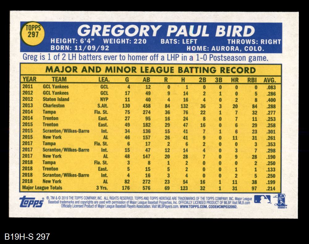 2019 Topps Heritage #297 Greg Bird 8 - NM/MT