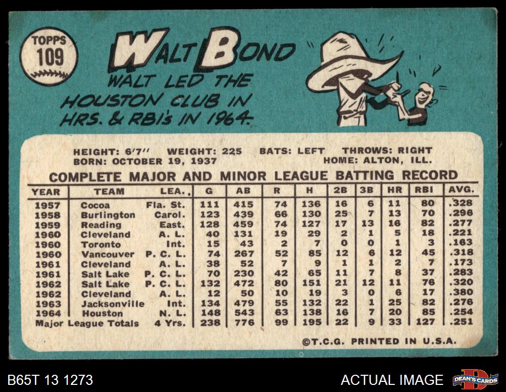 1965 Topps #109 Walt Bond