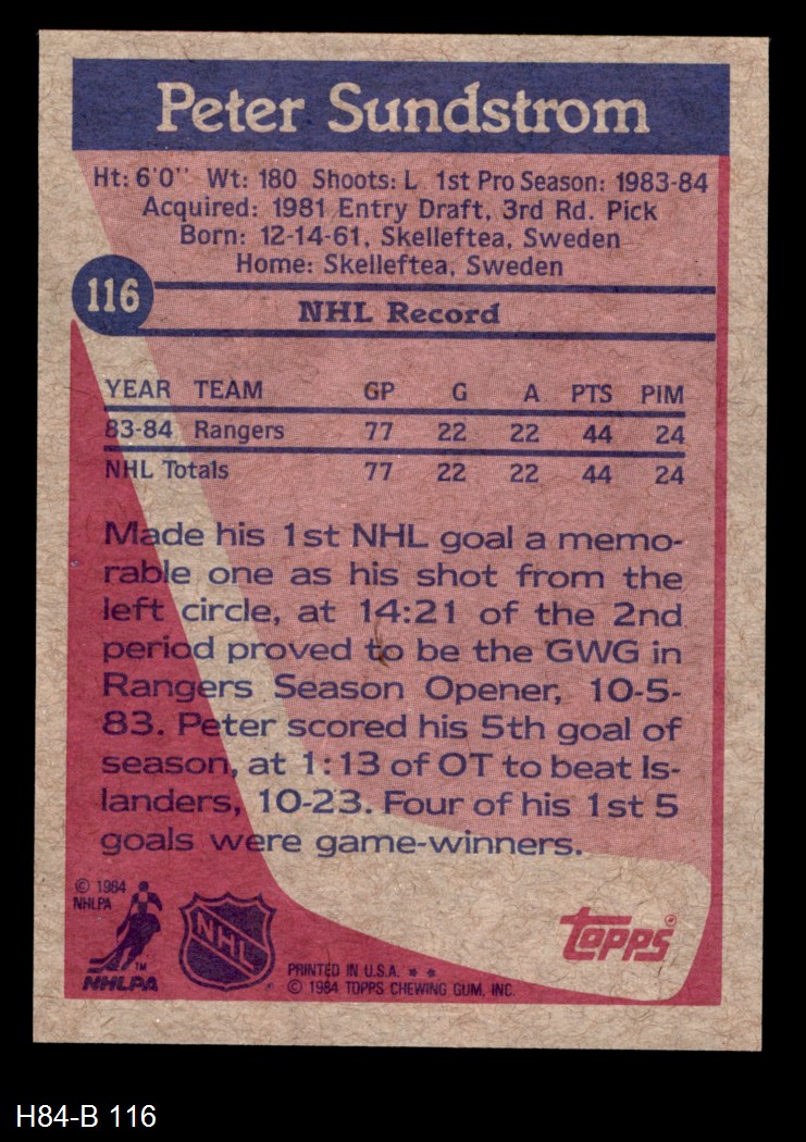 1984-85 Topps Hockey Cards (495 available)1984 Topps Rangers-Hockey (29 available)